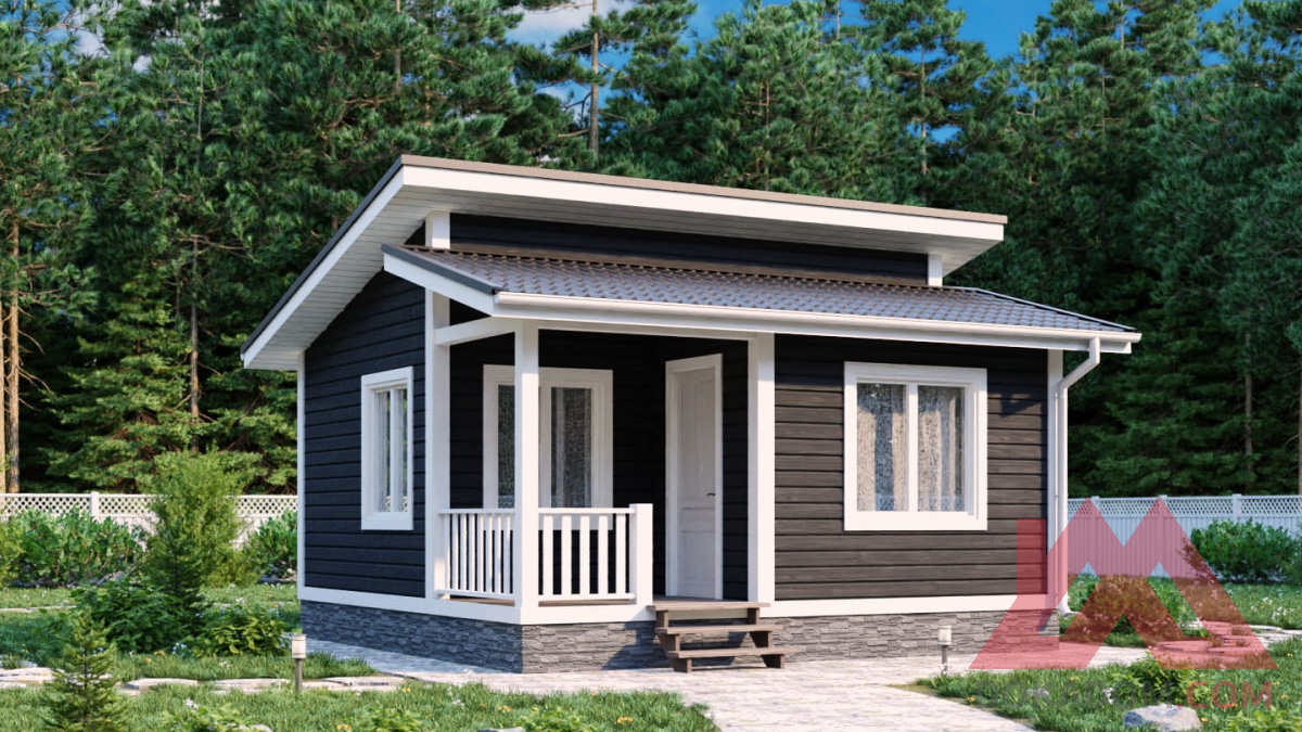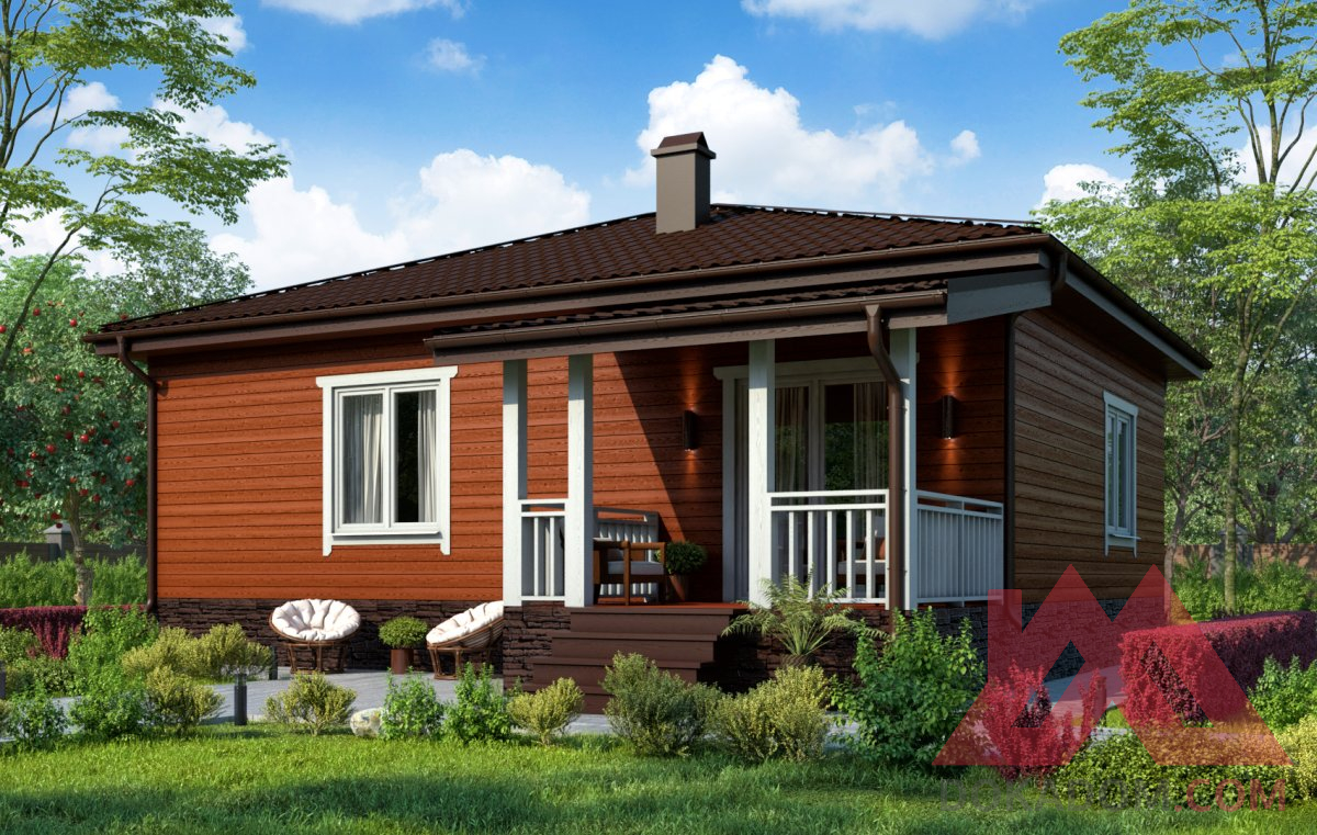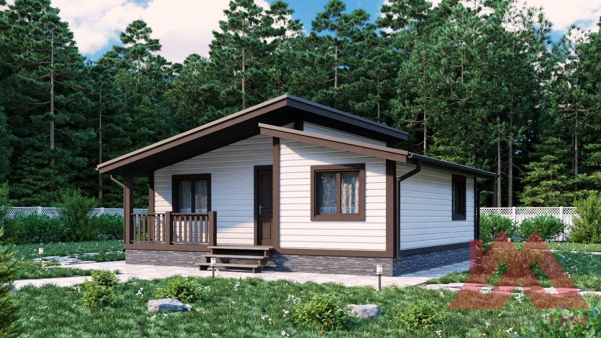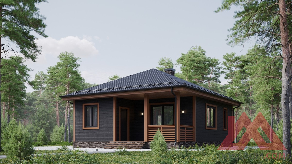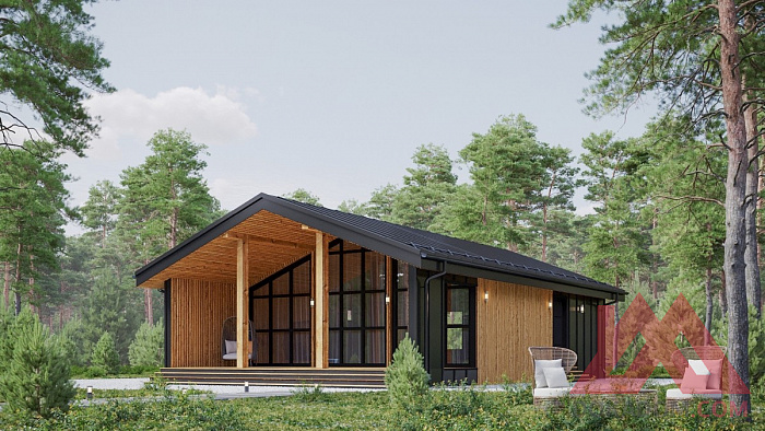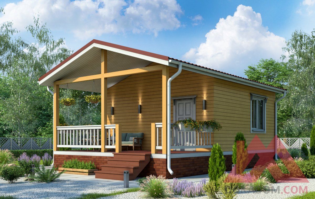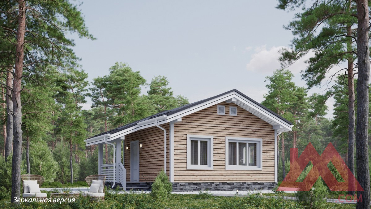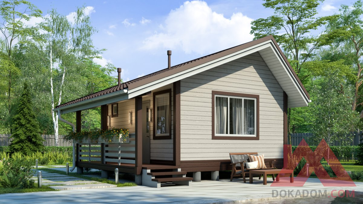 Проект уютного дома для жизни и отдыха: В проекте просторная кухня-гостиная, одна спальня и полноценный санузел.