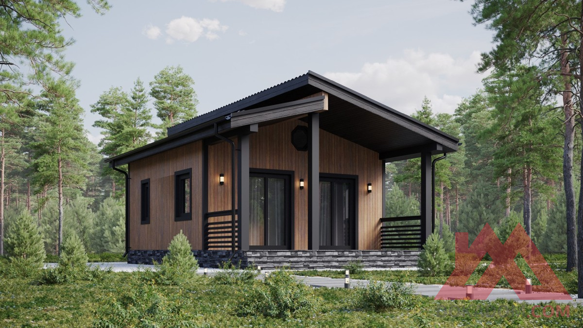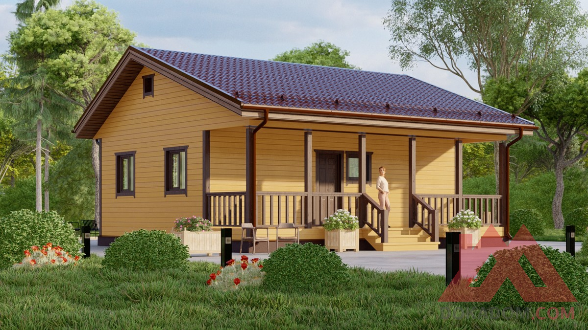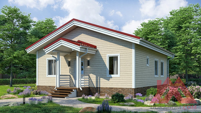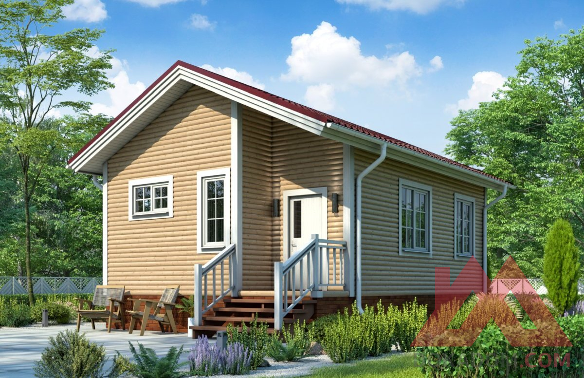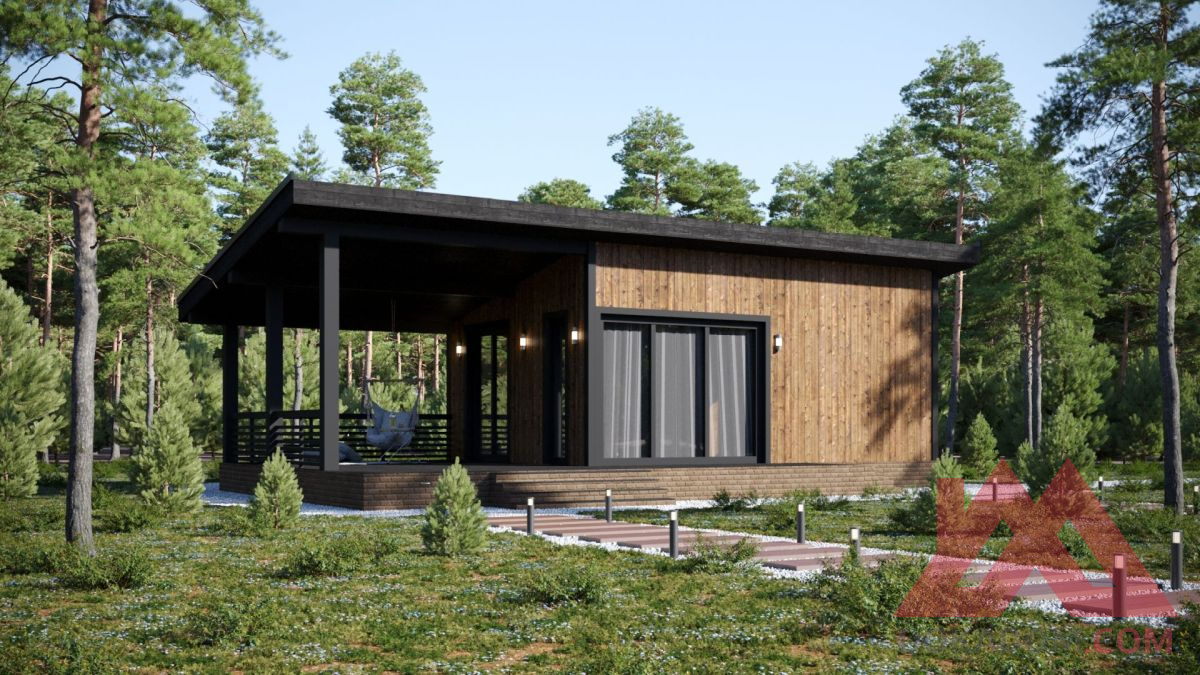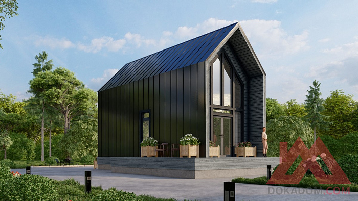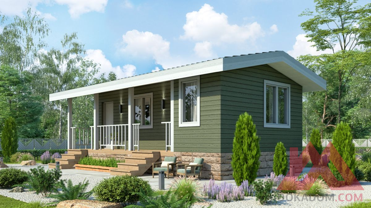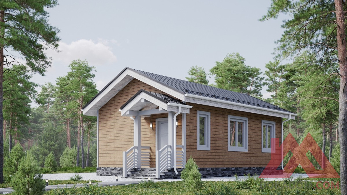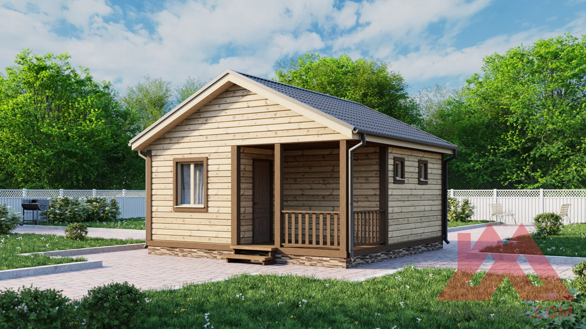 Проект уютного дома для жизни и отдыха: В проекте просторная кухня-гостиная, одна спальня и полноценный санузел.