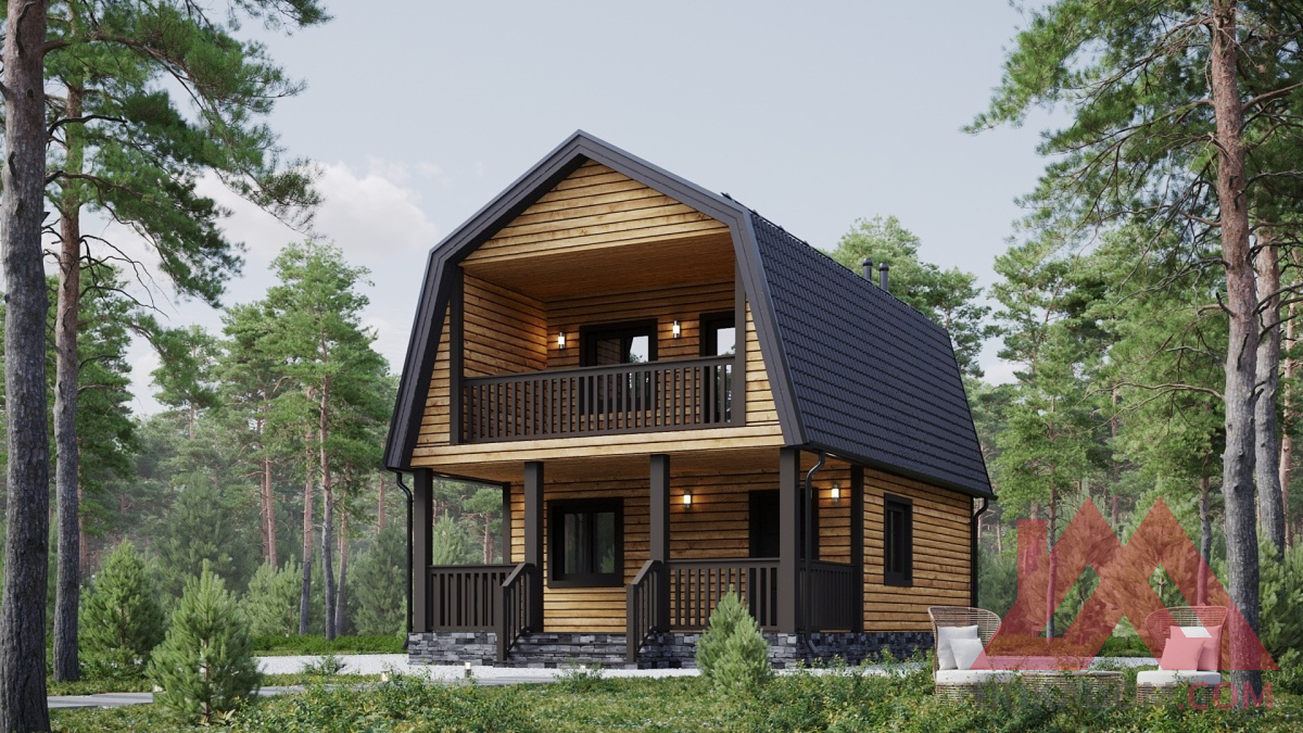 Классический каркас дом 6*8 с мансардным этажом. На первом этаже просторная гостиная и небольшая кухня. Санузлы можно адаптировать под сауну. На втором - 2 спальни.